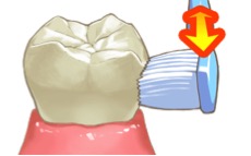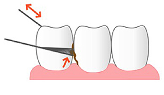 歯と歯の間を、のこぎりを引くように左右に動かしながら挿入します。