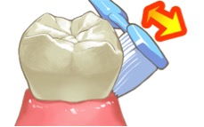 歯肉の状況や磨く場所によって、異なる磨き方をすることが大切です。健康な歯に対しては、毛先を歯面に垂直に当てて、少し圧をかけ、小刻みに動かすスクラッビング法がおすすめです。また、歯周病などで歯肉が腫れている場合は毛先を歯の軸に対して45度の角度で歯と歯肉の間の溝に少し家を挿入して、数ミリの範囲で小刻みに振動させるように動かすバス方がおすすめです。