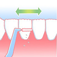 歯と歯の間の隙間に横から入れてそのまま数回往復させます。