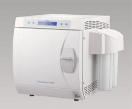 | 高圧蒸気滅菌器 バキュクレーブ31B+ ヨーロッパ規格であるEN13060に準拠した「クラスB」プレポストバキューム式の滅菌器です。滅菌前にチャンバー内で真空と蒸気の注入を交互に繰り返すことで、タービンなどのハンドピース内部の中腔パイプ内の残留空気を抜き、蒸気を細部まで行き渡らせ滅菌を行います。 |