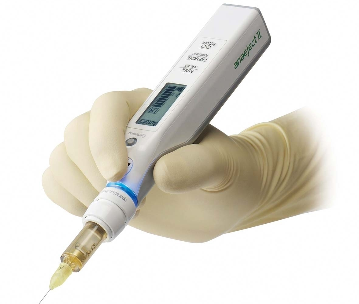 電動麻酔器 アネジェクトⅡ 電子制御した麻酔液注入器を使い一定の遅い速度で麻酔注射することにより、痛みを最小限に抑えます。注射時には優しい音楽が出ることにより緊張を和らげる効果もあります。 |
